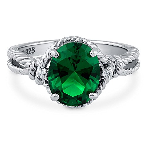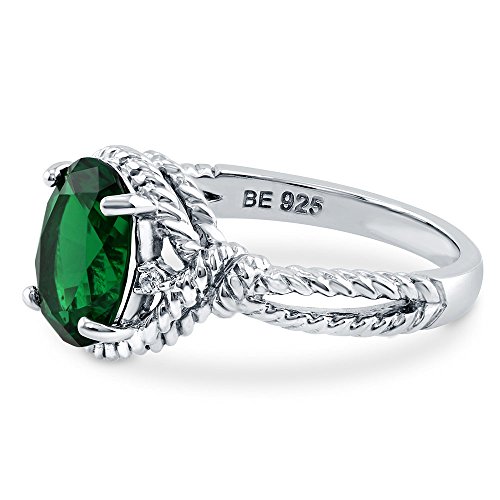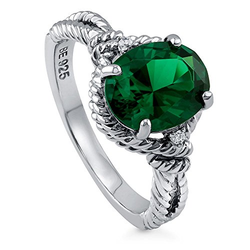 -. Title : BERRICLE Sterling Silver 2.56 ct.tw Oval Simulated Emerald Cubic Zirconia CZ Solitaire Fashion Ring