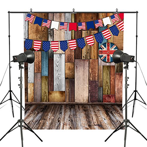 MUEEU 6X9FT Vintage Colorful Wooden Wall Floor Background America Flag Bunting Photography Backdrops