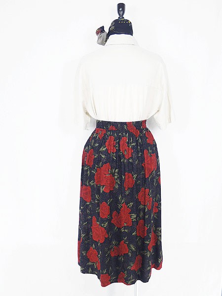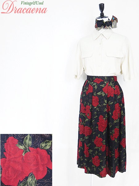 Ladies ブランド- カラー黒ベース メール便不可 コンディション★★★ 素材レーヨン 表記サイズ4 スタッフコメント裏地なし。 実寸サイズ 着丈 76 cm ウエスト 62cm 〜 70cm (24インチ〜27.5インチ) ※ウエスト・ヒップ以外は平置き採寸