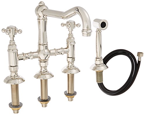 Rohl A1458XMWSPN-2 Country Kitchen Three Leg Bridge Faucet with Cross Handles Sidespray and 9-Inch Reach Column Spout, Polished Nickel