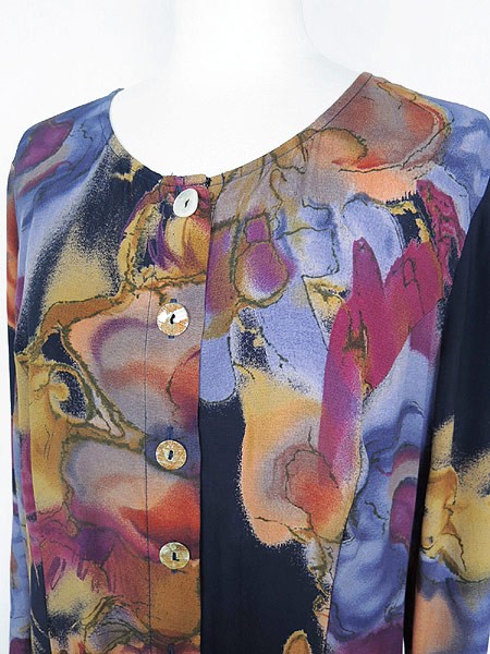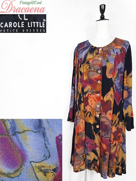 Ladies ブランドCAROLE LITTLE カラーネイビーベース メール便 コンディション★★★ 素材 表記サイズ スタッフコメント タグ記載消えてる為、詳細不明。 裏地なし。 透け感ややあり。 シャリシャリした触り心地でレーヨンのような素材感です。 実寸サイズ 着丈 92 cm 身幅 51 cm 肩幅 38 cm 袖丈 55 cm ※ウエスト・ヒップ以外は平置き採寸