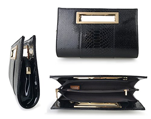 This shapely clutch is an outfit essential with its smooth faux leather exterior and cutout slot handle. Pair it with heels and a sundress for elevated street style.