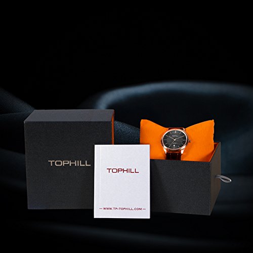 -. Title : Tophill Sf210 Classic Quartz Brown Leather Men's Watch Slim Black Dial Rose Gold Case