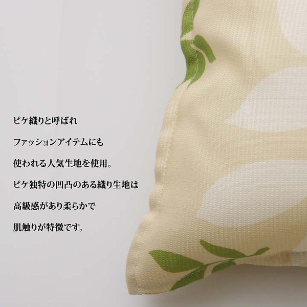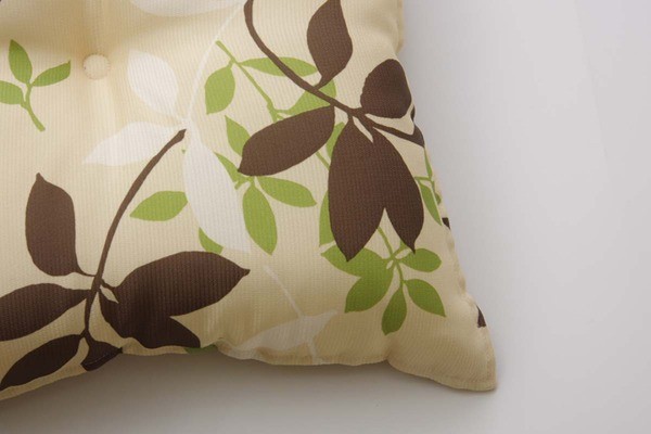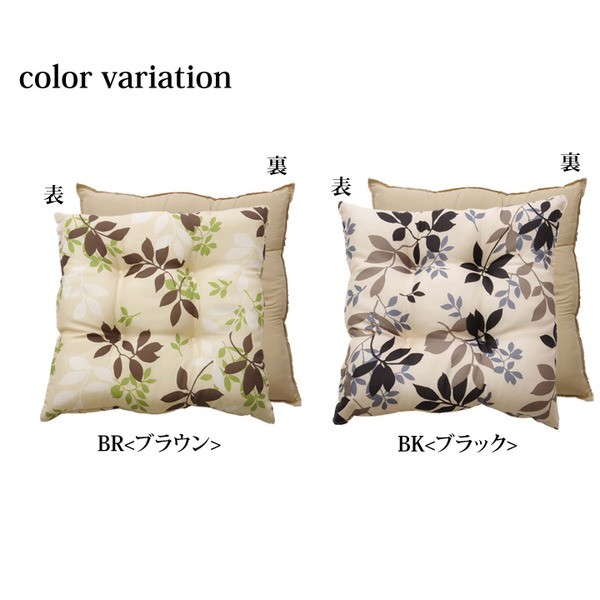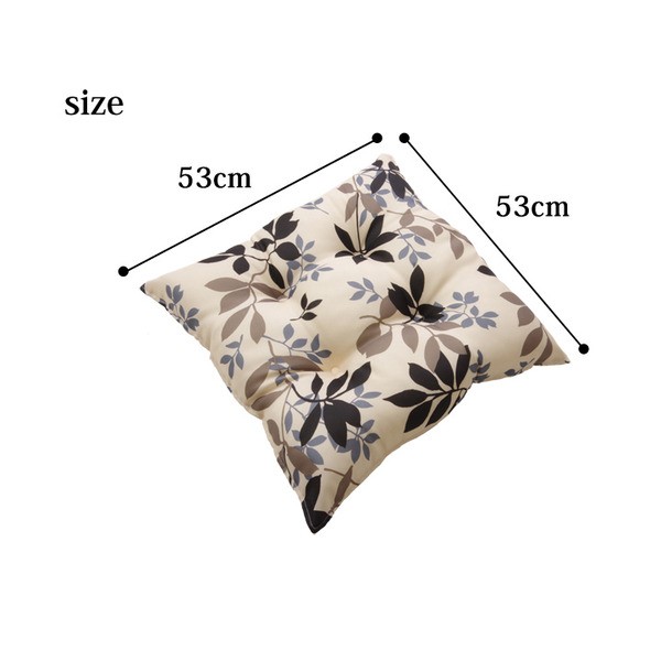カジュアルでお部屋に合わせやすいリーフ柄の商品です。国内で綿入れ加工をしているためほどよいクッション性が特徴です。