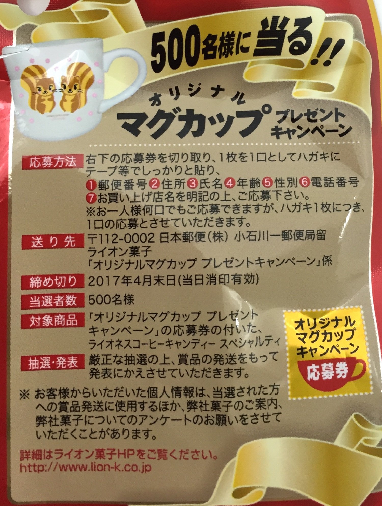 Campaign period: September 2016 to the end of April 2017 (postmarked effective).