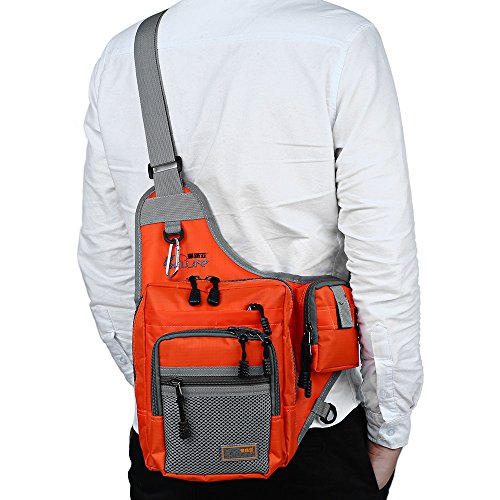 -. Feature : 1, Multi-purpose usage, can hold your fishing tackles like lure pliers, fishing box, rod, etc. / 2, It is big enough to put your belongings, compartments with zipper provide you extra space to put your belongings separately and in order. / 3, A padded and adjustable shoulder strap for extra comfort and convenience. / 4, Durable, nice touch,Crafted from waterproof canvas.