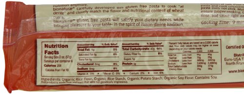 -. Binding : Grocery -. Brand : bionaturae -. EAN : 0799210434056 -. Feature : Durum wheat is grown in Italy on small family-owned farms that have been using traditional agricultural methods for centuries; All ingredients are certified organic and grown without the use of synthetic pesticides or fertilizers -. IsAdultProduct : 0 -. Label : bionaturae -. Manufacturer : bionaturae -. Model : 172734 -. MPN : 172734 -. NumberOfItems : 4 -. PackageQuantity : 4 -. PartNumber : 172734 -. ProductGroup : Grocery -. ProductTypeName : GROCERY -. Publisher : bionaturae -. Studio : bionaturae -. Title : Bionaturae Linguine Gluten Free Pasta, 12-Ounce (Pack of 4) -. UPC : 799210434056