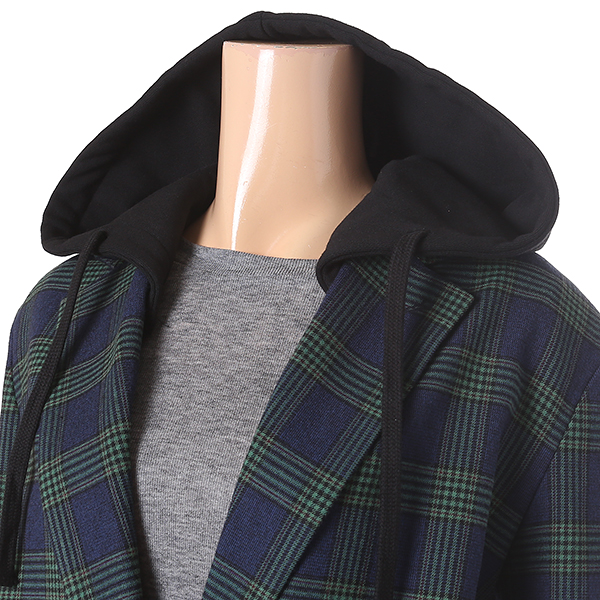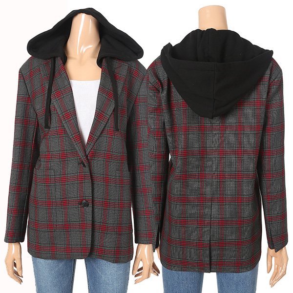 체크패턴과 탈부착 가능한 후드장식이 다크한 그레이 컬러와 매력적인 조화를 이룬 자켓 입니다. 세련된 체크에 캐주얼한 후드장식이 돋보이는 아이템 입니다.폴리에스터 혼방 소재로 내구성이 뛰어납니다. 데님팬츠와 매치하여 시크하고 캐주얼한 스타일을 연출할수 있습니다.