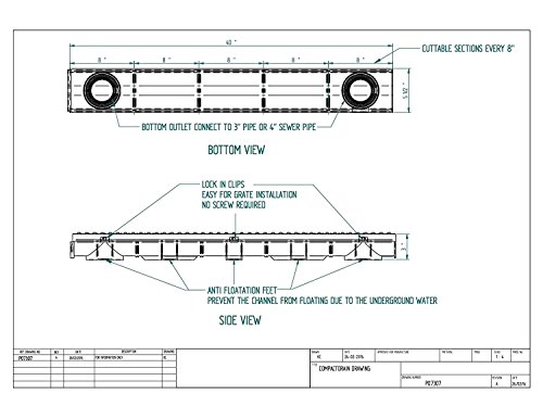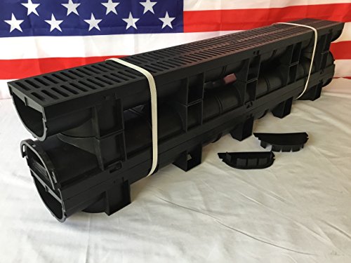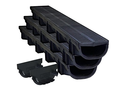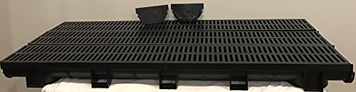 US TRENCH DRAIN 83500-3 Compact Trench Drain Black Polymer and Heel Friendly Grate, Pack with 2 End Caps