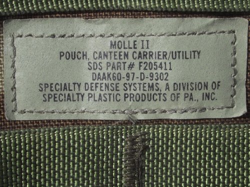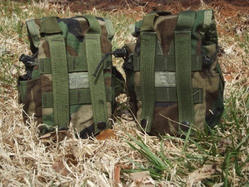 -. Binding : Misc. -. Brand : US Military -. Feature : Lot of 2 Molle II Woodland Canteen Pouches. / Fits 1 qt canteen and cup or GPS pouch. / Measures: 6.5 H x 4.25 W x 3.5 D inches. / Flap with quick-release buckle. / Two outside pockets. -. IsAutographed : 0 -. IsMemorabilia : 0 -. ProductGroup : Sports -. ProductTypeName : SPORTING_GOODS -. Title : Lot of 2 GI Woodland Camo MOLLE Canteen Carriers/Utility Dump Pouches, Made in USA