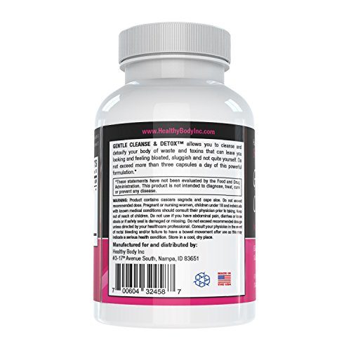 -. Binding : Health and Beauty -. Brand : Healthy Body -. Feature : ADVANCED GENTLE CLEANSE FORMULA WITH HERBAL, NATURAL INGREDIENTS: Providing not only effective natural laxatives, fiber & herbs that are gentle on the intestines, but also Acidophilus to help promote healthy levels of bacteria in the intestinal tract. Senna & Cascara Sagrada are known for their laxative ability. Aloe vera is a colon cleansing & liver cleansing herb. Psyllium husk & flax seed powder provide a little extra bulk for the old fecal matter to be moved out of the colon. / Increases Digestive Function - As waste is regularly pushed and purged from the digestive system, it becomes better at absorbing nutrients and also prevent harmful bacteria from building up and damaging your body. Bacteria build up can be a major source of illnesses and our cleanse an detox Formula can help prevent that. / FUNCTION MORE EFFICIENTLY: Body Detox Cleanse Pills Help Your Body Function More Efficiently QUICK & EASY WAY TO FLUSH TOXINS! - Ready to get rid of those nasty toxins that weigh you down and make you sick? Are you ready to do a complete 180 and turn your body around? You already know how important having a healthy colon is to your wellness...and our Gentle cleanse and detox is your answer! Lose some of those stubborn pounds with no negative side effects, no cramping, and no bloating. / Made in the United States of America - All of our products are proudly made in the USA in a top quality GMP, FDA registered certified facility. As with all our products They are always 3rd party tested by a third party site. We stand behind our products, which is why we offer a 100% Money back guarantee. / Body Detox Cleanse Pills, Cleanse Your Body with All-Natural Gentle cleanse and Detox Ingredients Our All Natural Gentle Cleanse, promotes healthy cleansing of the colon. No running to the bathroom, or having to plan when to use it. Our ALL NATURAL formula is gentle and effective with no harsh side effects. Our Gentle Cleanse doesn't cause cramps or is harsh on your body. It will be gentle on your stomach, but still strong enough to get the job done right! -. Label : Healthy Body -. Manufacturer : Healthy Body -. PackageQuantity : 1 -. ProductGroup : Health and Beauty -. ProductTypeName : HEALTH_PERSONAL_CARE -. Publisher : Healthy Body -. Studio : Healthy Body -. Title : Body Detox and Cleanse (For Her)