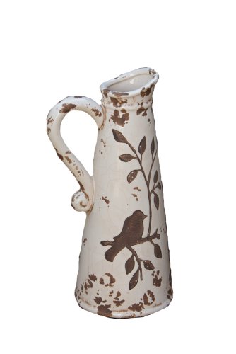 Your Heart's Delight Birds 'n Branches Pottery Pitcher, 13 by 4-3/4-Inch, White