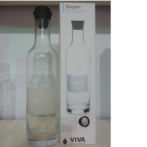 -. Feature : use with our VIVA glass aerator funnel / glass wine decanter; 34 oz capacity / 12.25"h x 3.125" dia / eatures a black silicone top that delivers a drip-free pour / includes a silicone and stainless stopper for wine storage