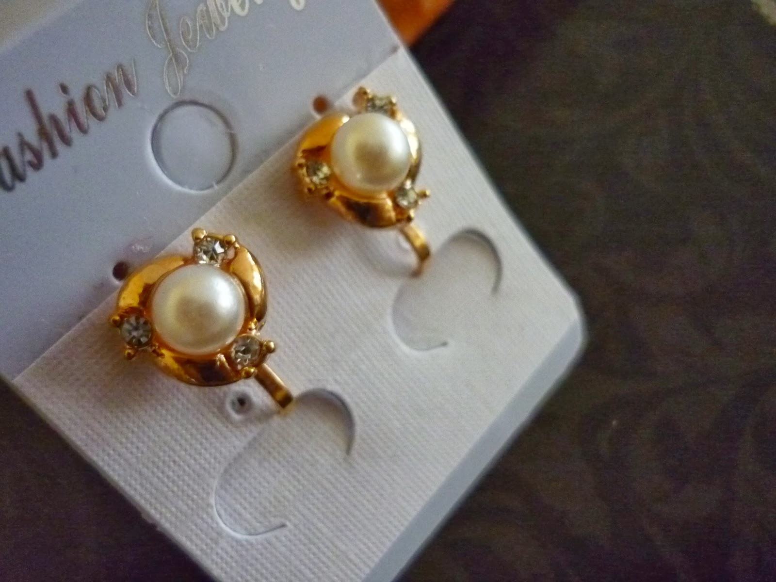 Gold coloured pearl earrings with fake diamonds. Rubber backed hinged clasp (see below for example). Rubber piece is detachable. Put rounded end of rubber piece into hole in clasp. No ear piercing required. Just use the clasp to clip onto your ear lobe. As simple as that!