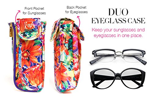 Binding : Apparel Product Description The Duo Eyeglass Case keeps your eyeglasses and sunglasses protected and in one place. The large front pocket holds sunglasses and expands for larger lenses. The back pocket hold eyeglasses or a second pair of sunglasses. This case fits perfectly in the PurseN Handbag Organizer and the top pocket flaps makes top access to both pairs of glasses easy. 0