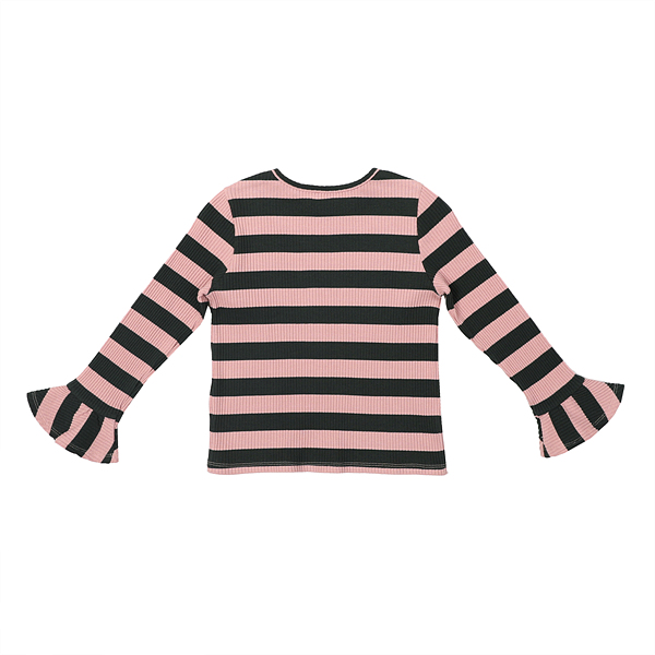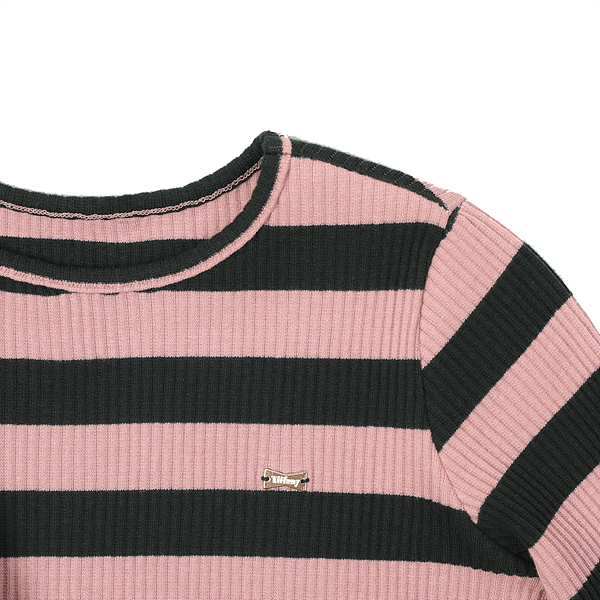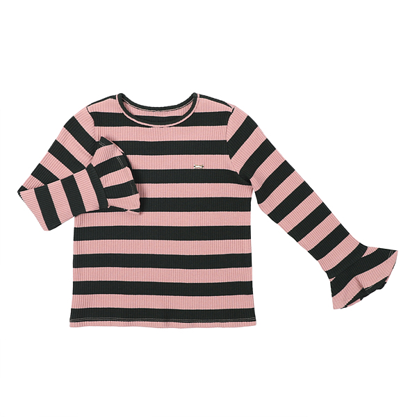 * 상세설명-귀여운 소매프릴단이 포인트인 라운드넥 골지 스트라이프 티셔츠 니트나, 레이어드해서 코디연출할수있는 기본스트라이프 티셔츠.