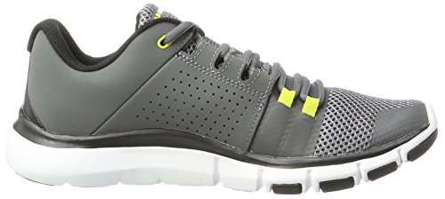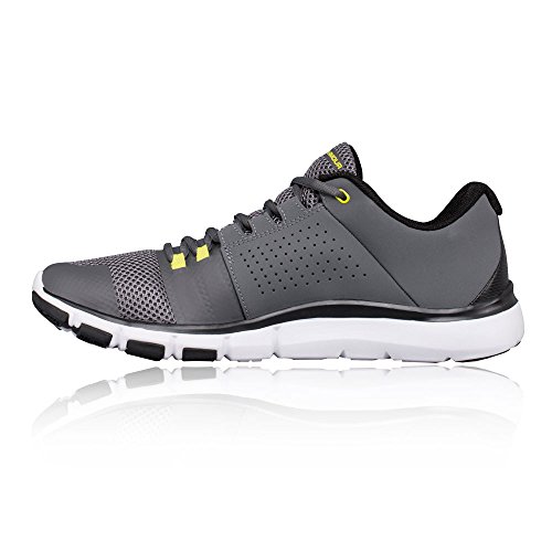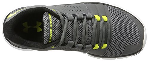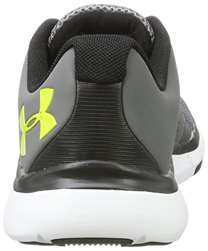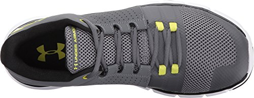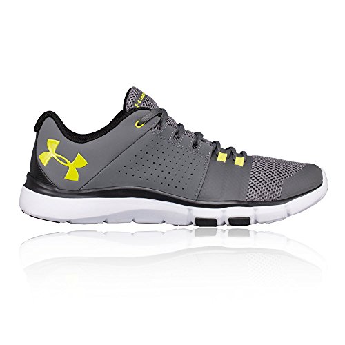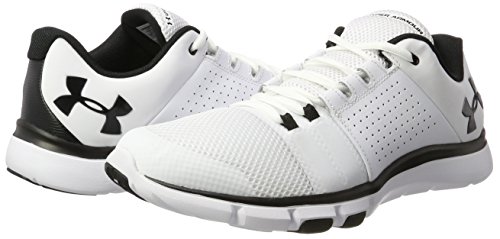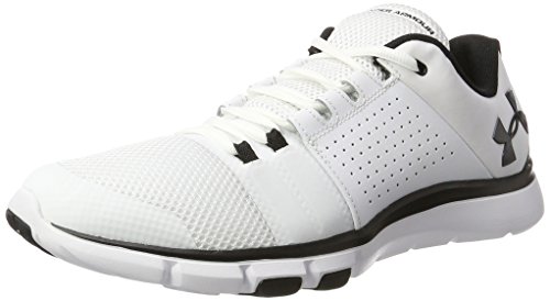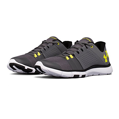 Studio : Under Armour Publisher : Under Armour Binding : Apparel Product Description Under Armour Strive 7 Training Shoes Push yourself to your limits with every gym session in the Under Armour Strive 7 Training Shoes. Mesh Upper The Under Armour Strive 7 Training Shoes are constructed with a spacer mesh upper offering enhanced airflow, keeping your feet feeling cool and dry throughout a hard workout. With additional stitched leather overlays on the upper, it provides long-lasting durability and support. The upper is also designed with a webbed lacing system and an internal TPU heel counter which helps to ensure a locked-in fit for maximum support. Micro G Midsole Located in the midsole is UA's proprietary foam technology that offers that responsive, bouncy feeling. Micro G is 30% thinner than it's standard counterparts and works to decrease the overall weight of the shoe and offers a low-to-the-ground ride and responsiveness. By allowing the foot to be lower to the ground, it provides the wearer with a better feel for what's underfoot, while enhancing the ability to change direction quickly. It's also designed as a high rebound, low compression set foam which ensures a high level of bounce and responsiveness which gives you a little extra lift and energy return. Multi-Directional Outsole The outsole is designed to offer multi-directional traction which is perfect for those circuit training sessions. For additional help during those quick movements, the strategically placed rubber outsole pods are located in high-wear areas to improve traction. Lastly, anatomically correct flex grooves can be found at the forefoot to enhance natural movement, ensuring quick and nimble directions while working out. 0