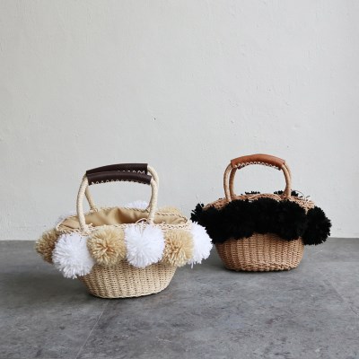 밝은 베이지 색상에 화이트와 베이지 폼폼이가 달린 색상과 브라운 색상에 블랙 폼폼이가 달린 차분한 느낌의 가방 두가지로 준비했어요.