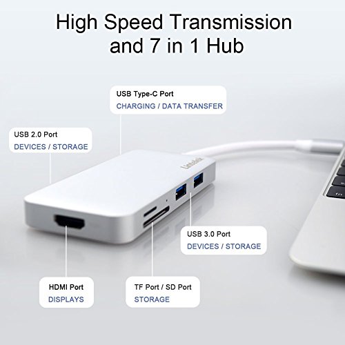 USB C Hub, LINTELEK, Type C Adapter 3.1 Type C Hub with USB C Charging Port,HDMI Port,2 USB 3.0 & 1 USB 2.0 Ports,SD & MicroSD Card Reader,Portable for MacBook Pro 2015/2016, and more Type-C Devices