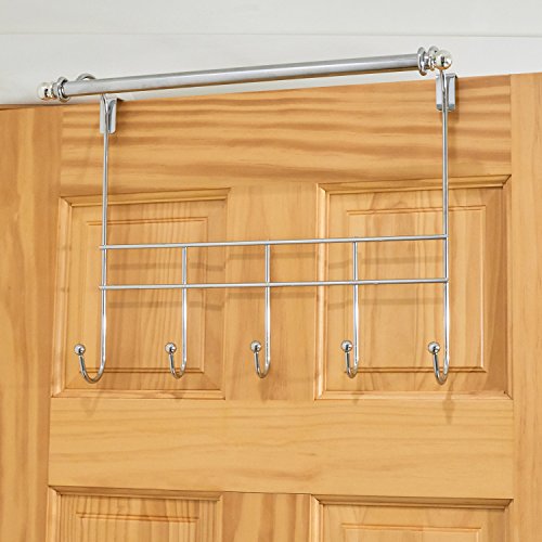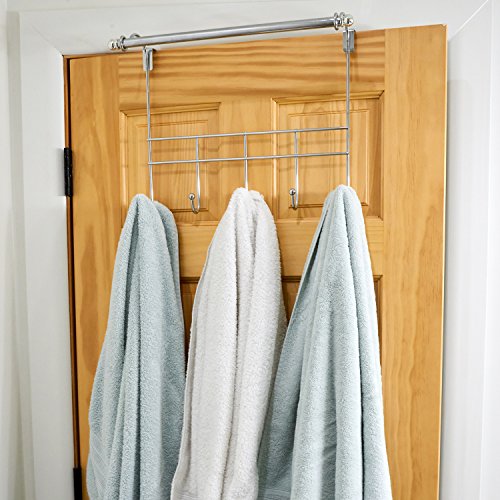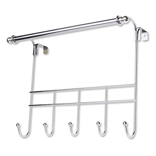 Over the Door Towel Bar with 5 Hooks for Bathrooms in Chrome Finish / Easily replaces any 18 or 24 inch Rods, Bars, Hangers and Racks