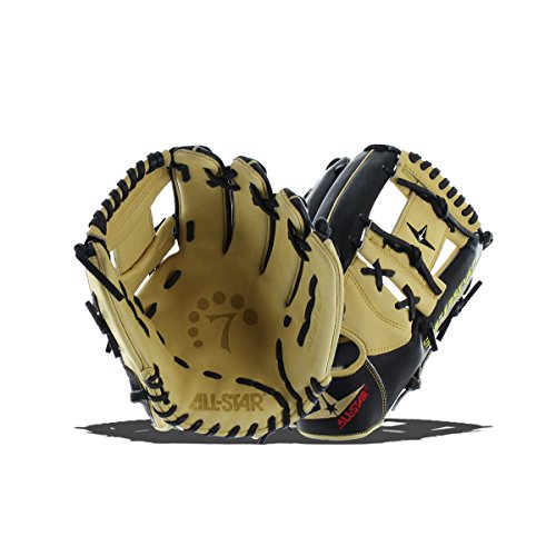 Studio : All Star Publisher : All Star Binding : Misc. Product Description Known for their catcher's mitts, All Star has brought the same quality to the rest of the diamond with their System Seven Series. These gloves draw from the success of their mitts and use the same high quality leather found on their popular CM3000 model. This Japanese Maruhashi Black and Tan leather has distinct properties that allow these gloves to break in fast and have long-lasting durability. The tan leather on these gloves helps it to break in fast and form a great pocket. The black leather's stiffer feel provides the support needed for a long lasting glove. Inside, All Star's Pro Guard Padding provides a thin layer of extra padding in the palm that helps kill the sting of miscaught balls, yet is thin enough to still allow the player to know right where the ball is in the glove. This 11.75 Inch pattern features an conventional open back and a shallow pocket for quick ball transfer. Its I-Web is perfect for snagging grounders or line drives in the infield. 0