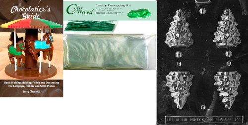 Cybrtrayd 3D Tree Chocolate Mold with Chocolatier's Bundle of 25 Cello Bags, 25 Green Twist Ties and Chocolatier's Guide