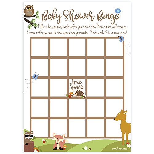 Woodland Animals Baby Shower Bingo Game Cards (50 Count)