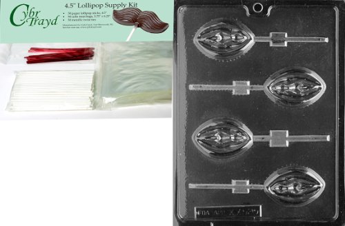 Cybrtrayd 45StK50R-XX525 Lady Lolly Adult Chocolate Candy Mold with Lollipop Supply Bundle, Includes 50 Lollipop Sticks, 50 Cello Bags and 50 Red Twist Ties
