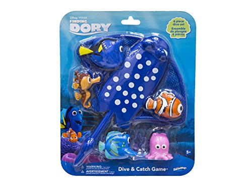 -. Binding : Toy -. Brand : SwimWays -. Color : multi-colored -. EAN : 0783419791706 -. Feature : The Disney Finding Dory Mr. Ray's Dive and Catch Game is a pool toy for kids. / Pick up Dory and her friends for a school field trip to the reefs with the Mr. Ray net! / Some characters sink and some float - dive and swim to catch them all. / Fun to play with and great for swim training practice. / Each set includes one Mr. Ray net and five characters: One each of Dory, Nemo, Pearl, Sheldon and Kathy. -. IsAdultProduct : 0 -. Label : SwimWays -. LegalDisclaimer : Ages: 5 and up. -. Manufacturer : SwimWays -. Model : 25166 -. MPN : 25166 -. NumberOfItems : 1 -. PackageQuantity : 1 -. PartNumber : 25166 -. ProductGroup : Toy -. ProductTypeName : TOYS_AND_GAMES -. Publisher : SwimWays -. Size : 8" -. Studio : SwimWays -. Title : SwimWays Disney Finding Dory Mr. Ray's Dive and Catch Game -. UPC : 795861251660