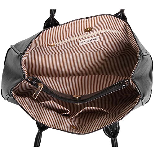 This bag also features a striped canvas strong fabric lined interior, multiple inner pockets, gold-tone hardware and 4 gold-tone studs/stubs on the bottom to keep this top double handle handbag away from excess dirt. This all-rounder purse by FASH is a true trendsetter and a perfect accessory for every occasion, so be as quick as you can and get one soon.*Due to monitor variations colors may appear slightly different.*