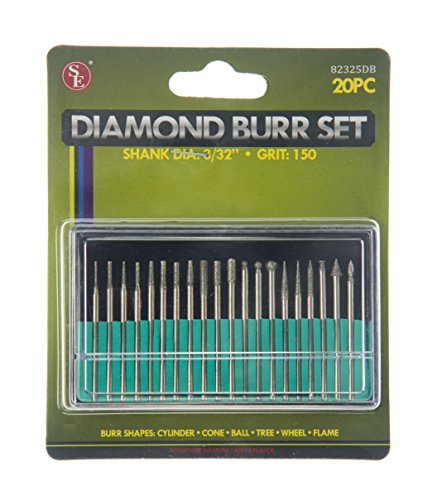 SE 82325DB 20-Piece Set of Assorted Diamond Burrs, 150 Grit (3/32” Shank Dia.)