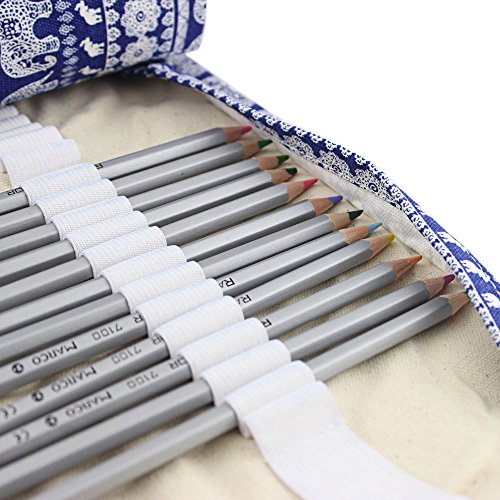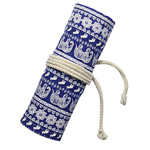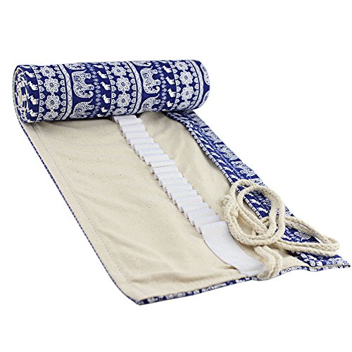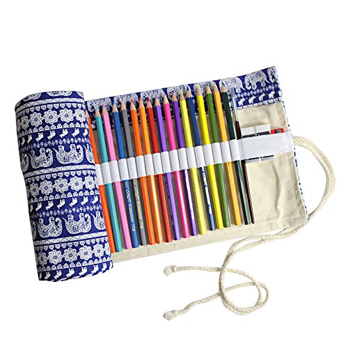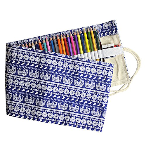Huhuhero Pencil Case 72-slot Handmade Canvas Pencil Storage Roll Wrap Pouch for Travel/ School/ Office/ Art Artist Children Adult Cute Elephant Animal Style (No Pencils)