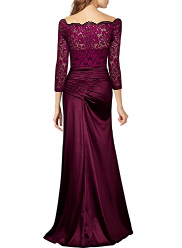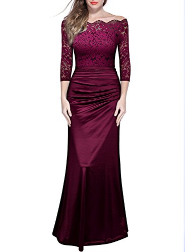 Women's Retro Off Shouler Floral Lace Ruched Bridesmaid Maxi Dress