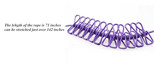 Specifications: Color: Purple, Red Material: PP Stainless steel Lenght : 180cm Clips: 12 pc Function: Drying Clothes Net weight: 6.2 Oz