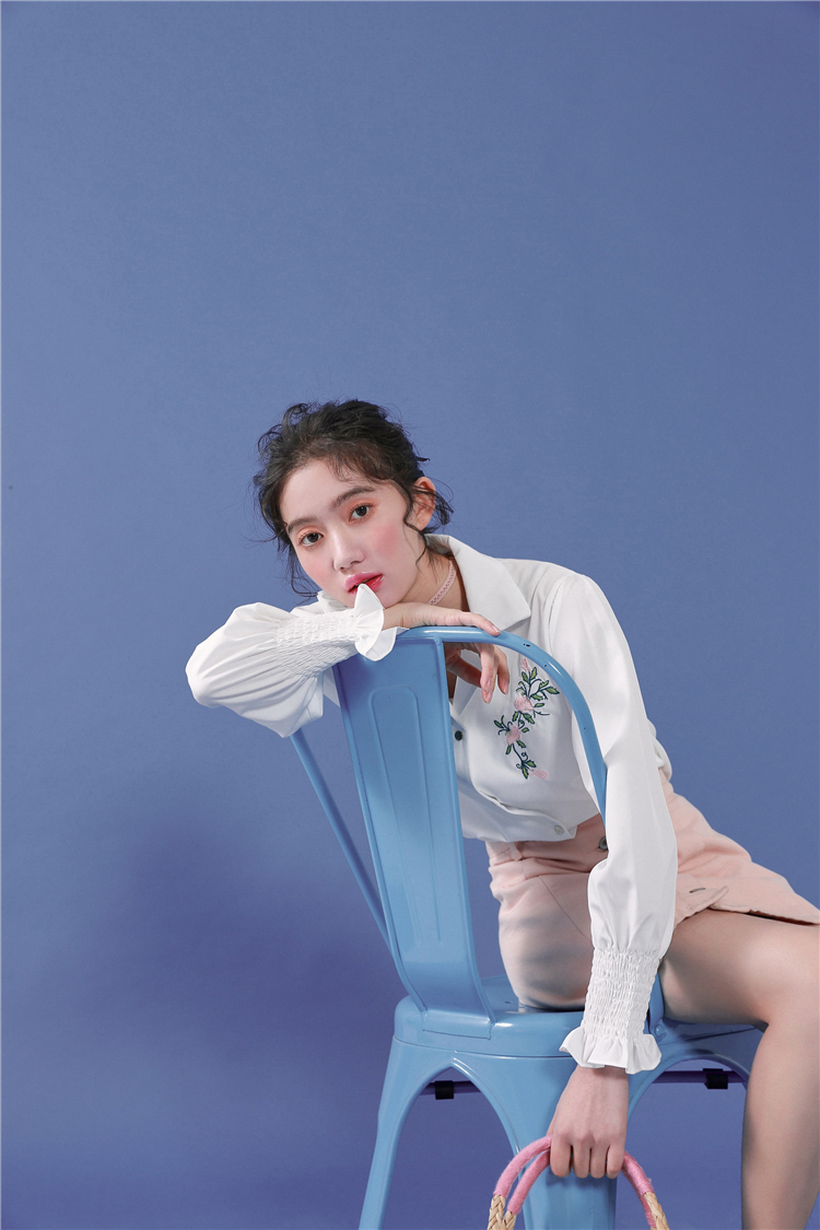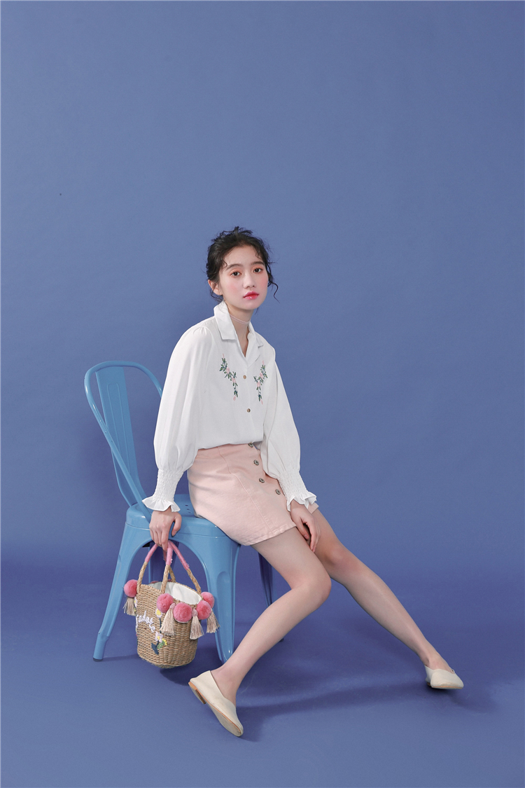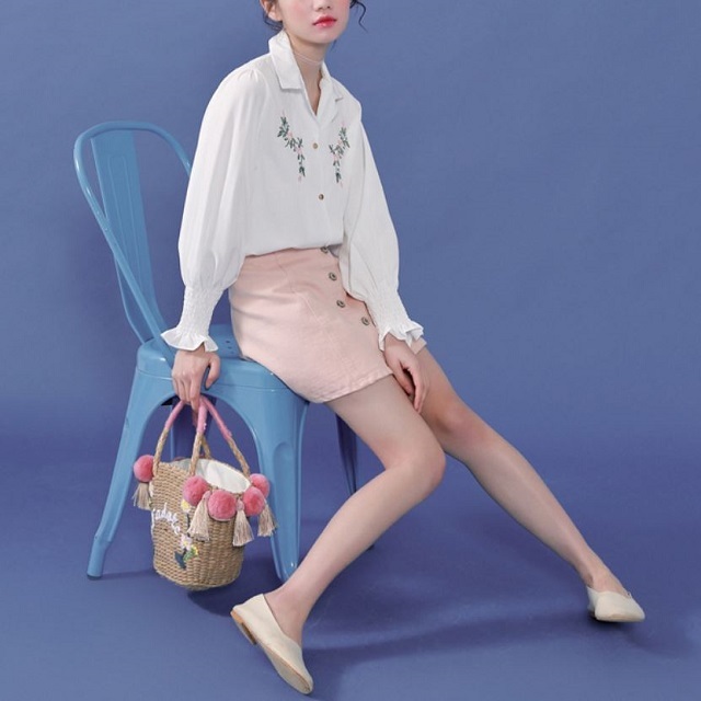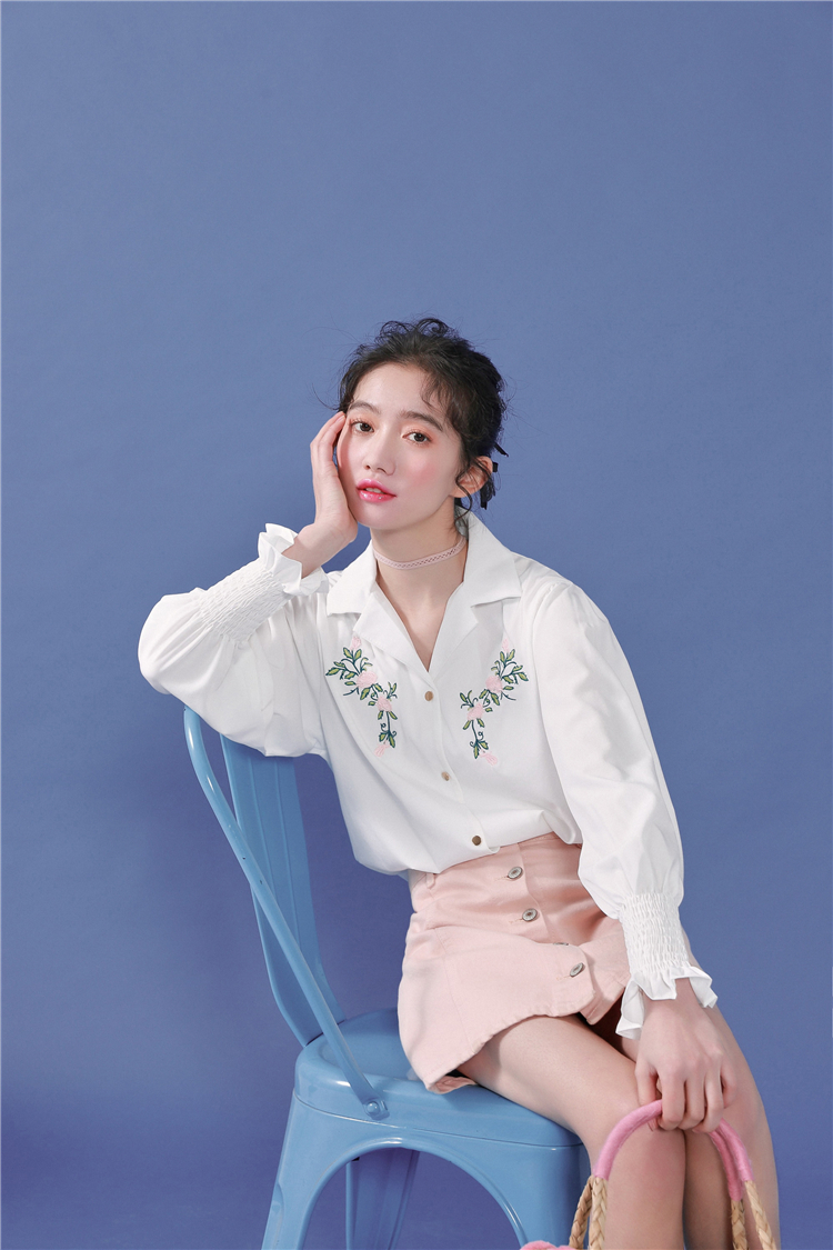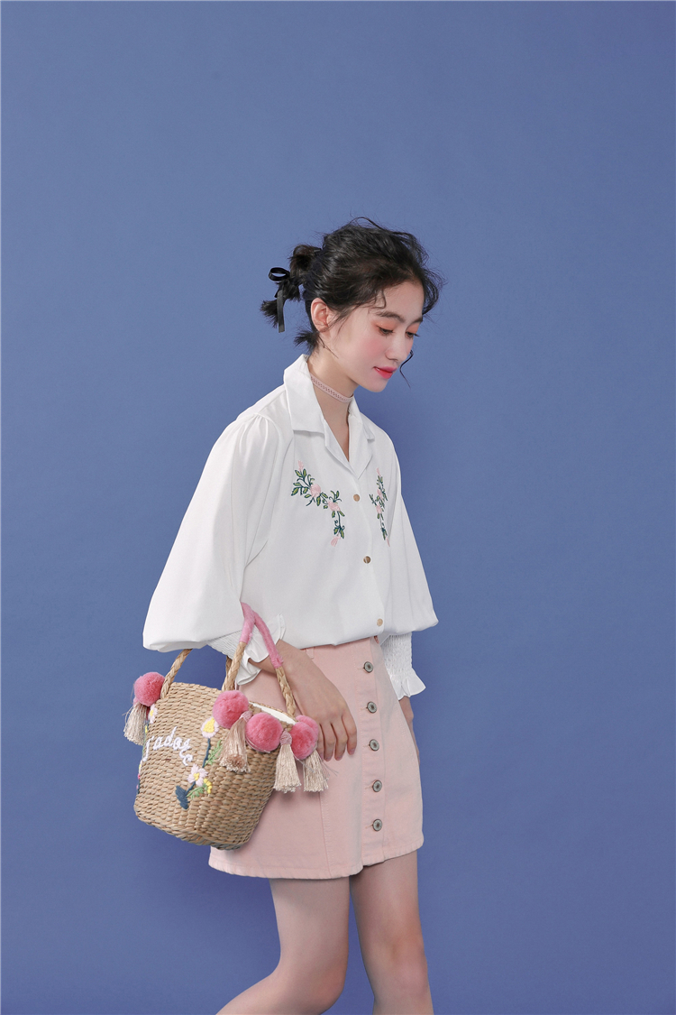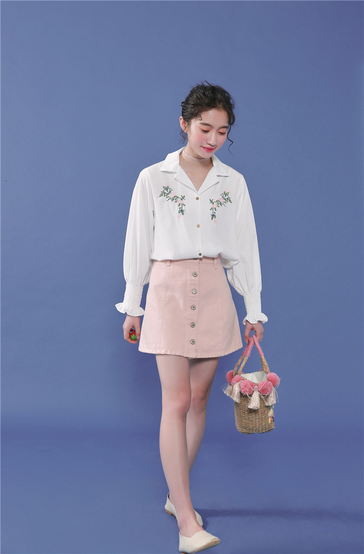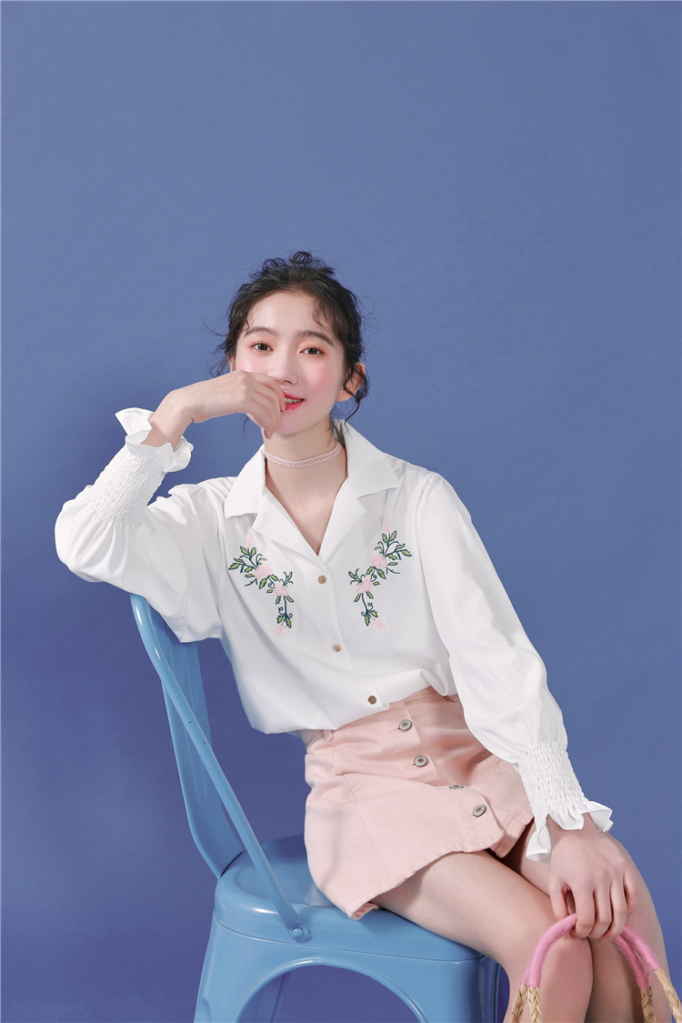 胸元の花刺繍がポイントとなった大人きれいな白ブラウス♪