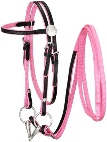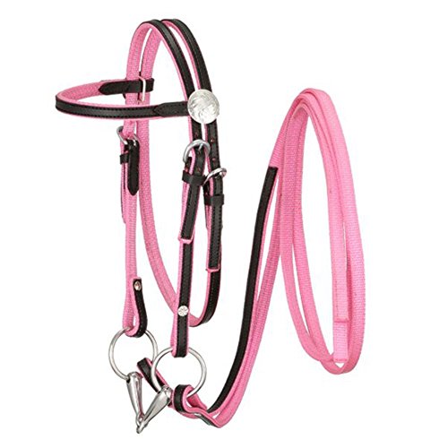 Studio : JT Intl Distributers Inc Publisher : JT Intl Distributers Inc Binding : Misc. Product Description The King Series Miniature Nylon with Leather Bridle provides riders and their mounts with quality construction and a comfortable style. Made with durable nylon accented with a fine leather overly, this tack comes with double cheek adjustments, Chicago screw bit ends and is available in a variety of color options. About JT International For over 35 years, JT International has been providing riders with quality equestrian equipment designed to maximize the riding experience. With over 1,100 different types of products available, they offer new and time-honored favorites to riders all over the world. From tack to training supplies, JT International has each rider and their mount covered. Made of .62 in. nylon accented with fine leather overlay. Choose from available color options. Double stitched throughout for durability. Features double cheek adjustments with Chicago screw bit ends. Complete with 84 in. matching ends. 0