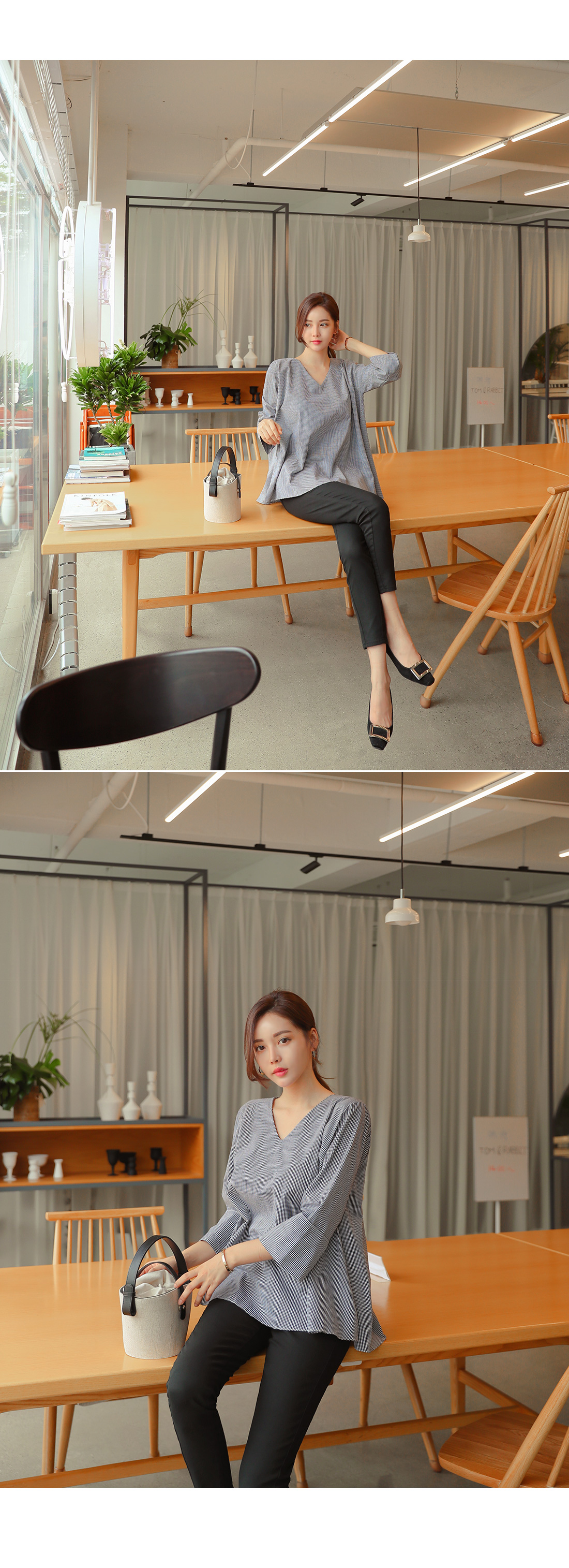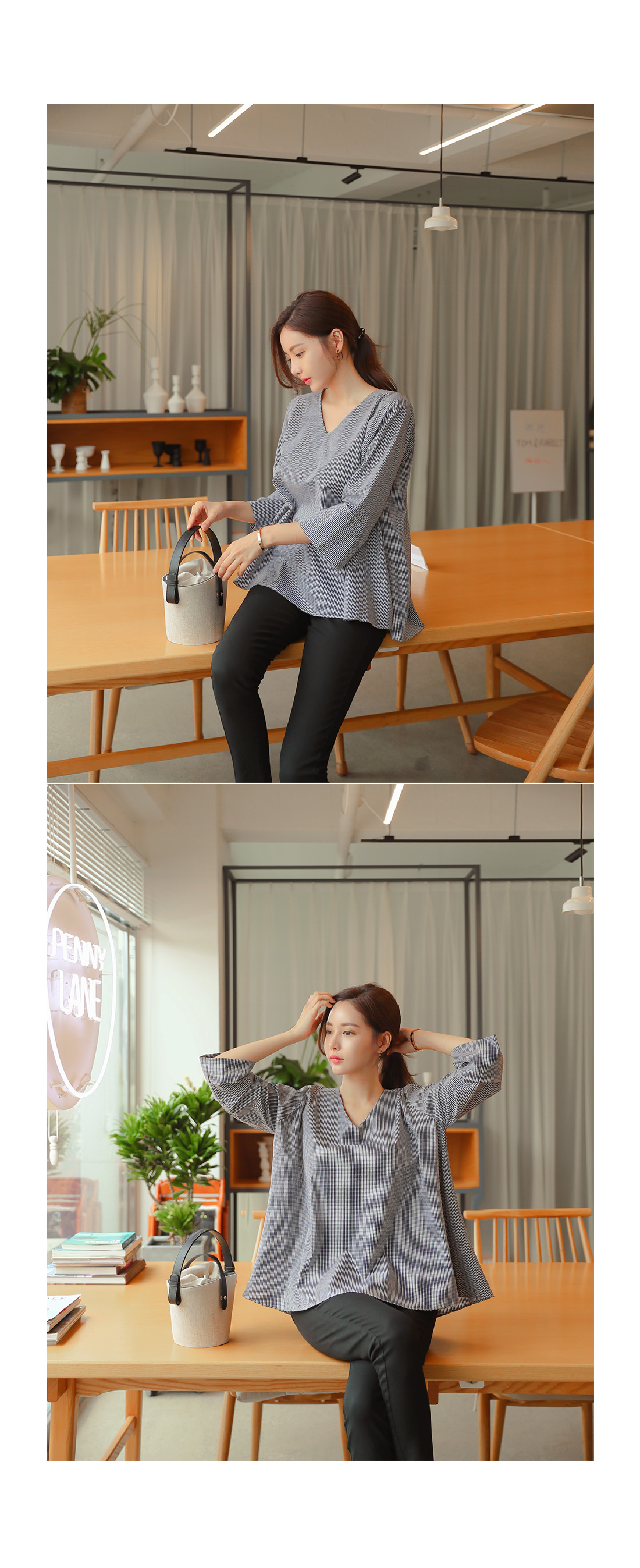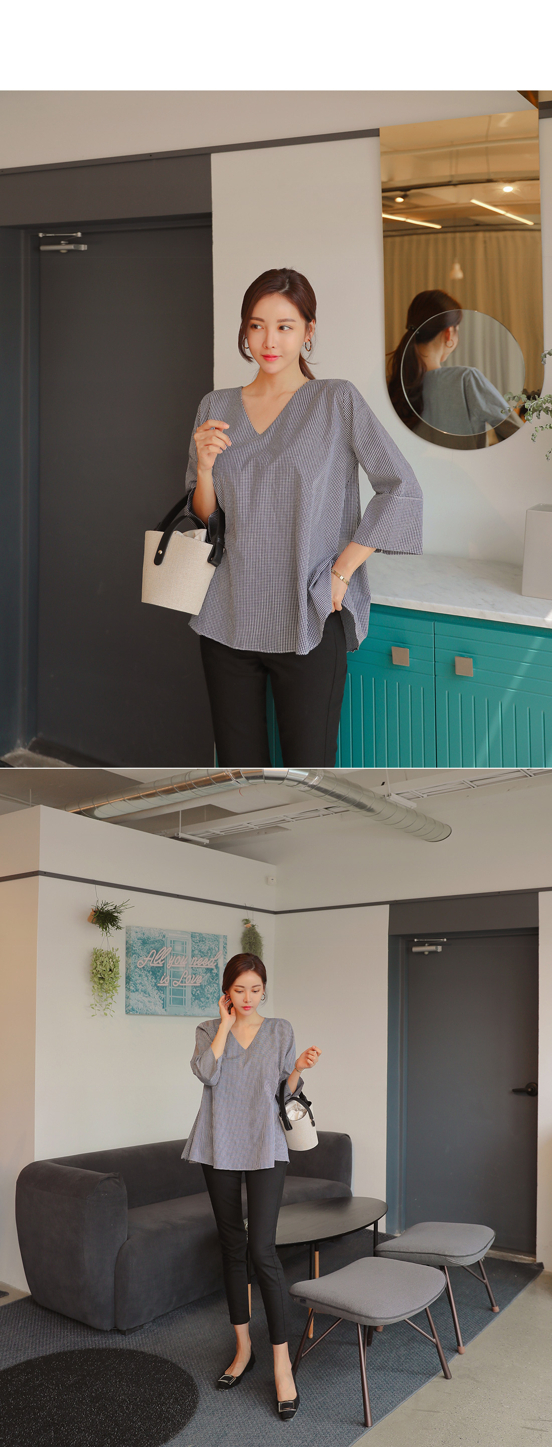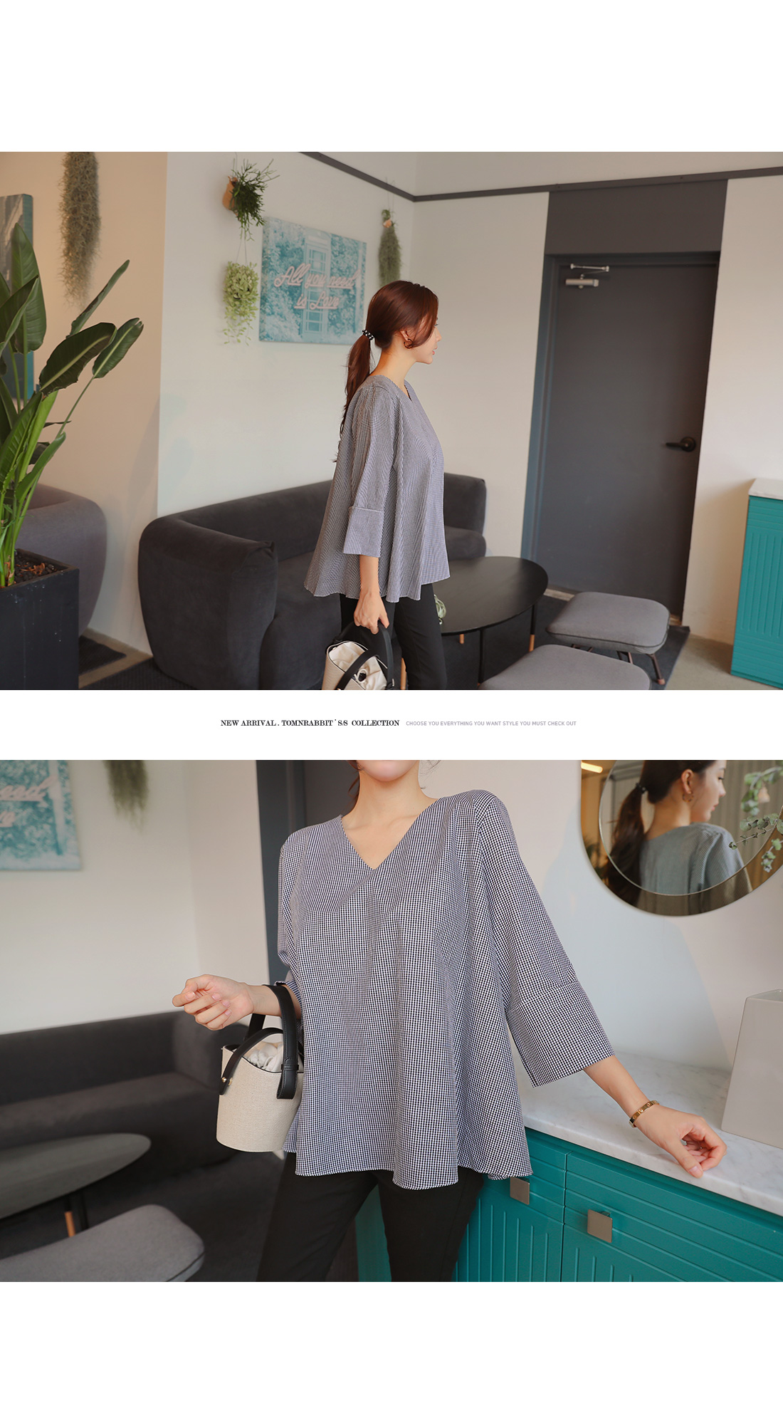 MD COMMENT 러블리한 룩을 한껏 연출해 줄 블라우스 소개할게요.살짝 내려오는 브이넥 네크라인으로 제작되었으며A라인으로 떨어지는 플레어 디자인으로바디 군살을 커버해 드리는 디자인이구요.7부 소매 기장감으로 소매단 한번 접어 연출된포인트 블라우스로 여성스러움을 한층- up 시켜주었으며밋밋함을 덜어 은은한 포인트는 물론!적당히 여유있는 핏감과 힙을 살짝 덮어주는 기장감으로 부담없이 편안한 착용감을 느껴볼 수 있답니다.체크패턴과 블랙 두가지 컬러로 준비되었구요,가벼운 코튼 소재감으로 지금부터 함께하기 좋아요 !모델이 착용한 것처럼 스키니 또는 숏 팬츠는 물론다양한 하의 아이템과 매치하여 포인트 있게즐기기 좋은 아이템으로 추천할게요!COLOR/SIZE 체크,블랙FREEMODEL FITTING 체크/FREE