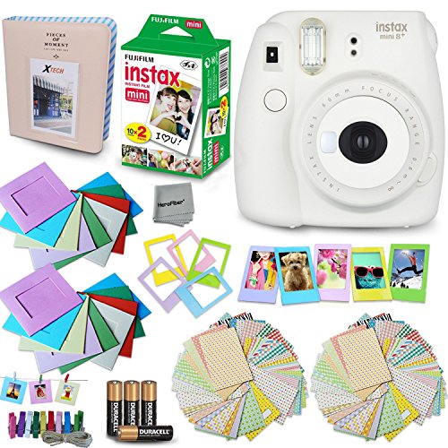 FujiFilm Instax Mini 8 Camera WHITE + Accessories KIT for Fujifilm Instax Mini 8 Camera includes: 20 Instax Film + Assorted Sticker, Plastic & Paper Frames + Photo Album + 4 AA Batteries MORE