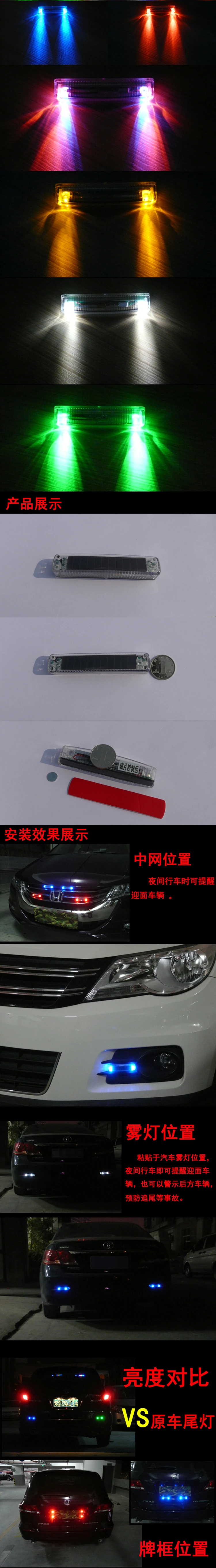 before use and then the sun exposure over 6 hours.Warning lights built-in sensor switch,Control diskette 3 seconds to open or close off the warning lights.After the warning lights turn on, remove the floppy disk near a second after flashing mode can be changed once,Built-5 clock mode can be adjusted.5 modes are as follows: A- colorful light blue - red - green - seven color B, each mode will be 5-30 kinds of strobe combinations.