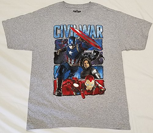 -. Brand : Marvel -. Department : mens -. Feature : Marvel Civil War Captain America Shirt / Heather Grey / Civil War Versus Adult Tee -. ProductGroup : Apparel -. ProductTypeName : APPAREL -. Title : Marvel Avengers Civil War Captain America Shirt