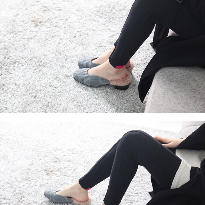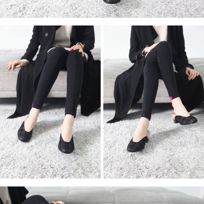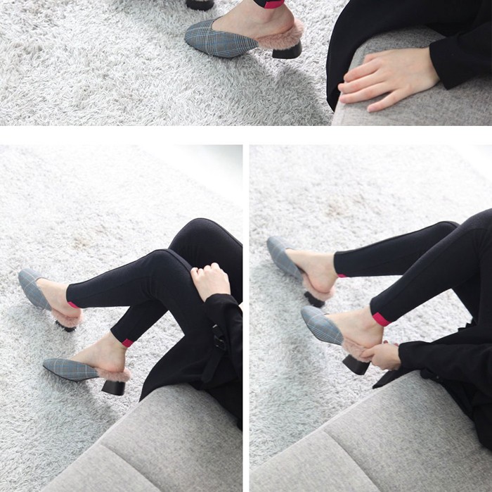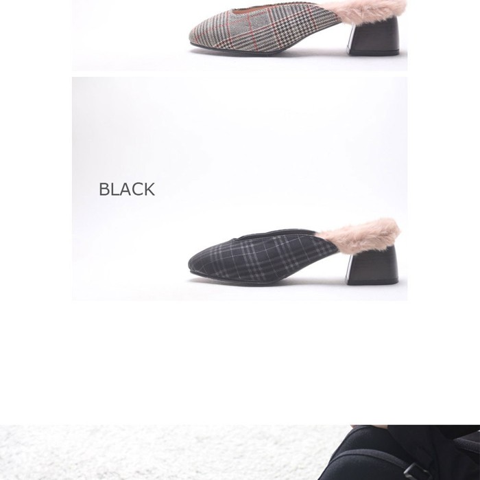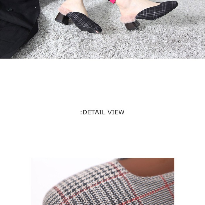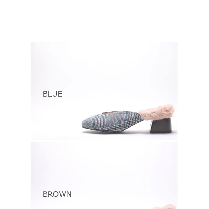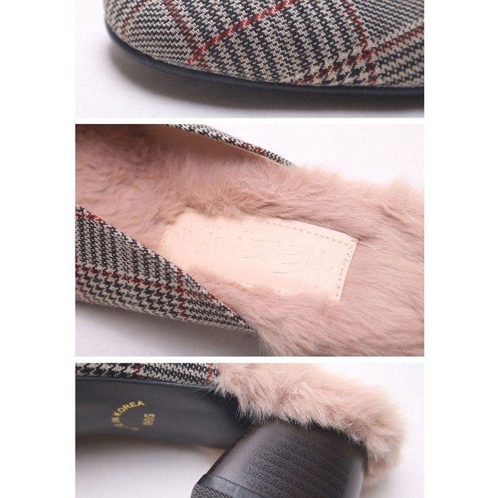 商品名:バブーシュ レディース チャンキーヒール 太ヒール チェック 2017 秋冬 ファッション 靴 婦人靴