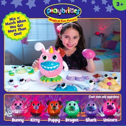 Your kids will be delighted by the Magical Light Show on their ceiling when they choose any of Playbrites six colors. Mix and match accessories will spark their imagination while they pop on eyes, ears, mouth/nose, and other fun animal parts, interchangeable with any Playbrite model. When they're done playing, all 9 accessories store safely inside the unit, for easy cleanup and transportation. The carry handle makes it easy to take Playbrite wherever you go. Your kids will love to say goodnight with Playbrites!Feature