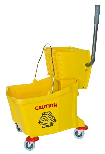 Magnolia Brush 6035-3 Plastic Mop Bucket Combo with Wringer, 35qt Capacity, 3" Ball Bearing Casters, Yellow
