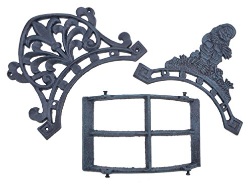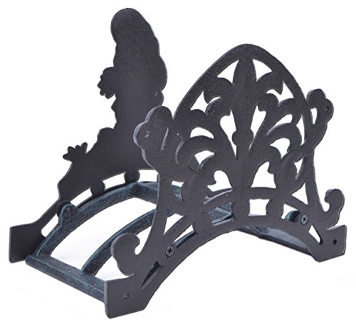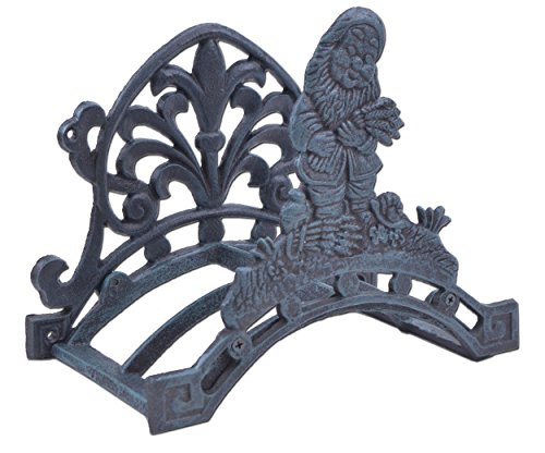 Garden Hose Holder Gnome Holding Wheat Verdigris Cast Iron Reel Hanger 10.25" Wide