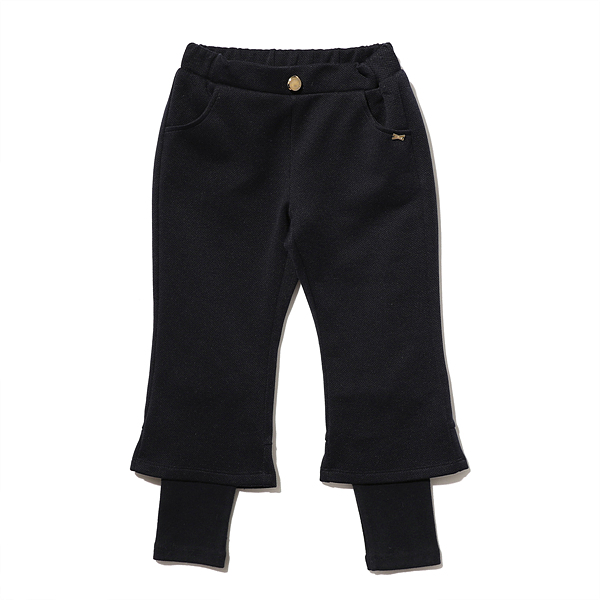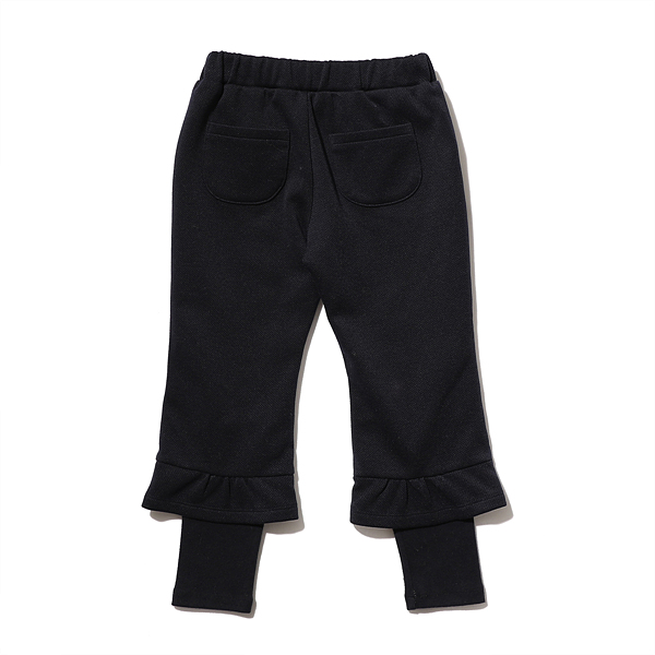 소재-겉감 : 폴리에스터 95 폴리우레탄 5 배색 : 면 95 폴리우레탄 5 색상-네이비 사이즈-110,120,130,145,155,165상세설명-부츠컷 다이마루 바지가 레이어드된 스타일의 팬츠입니다. 바지 뒷쪽 밑단에 프릴단으로 변화를 준 스타일입니다.