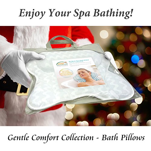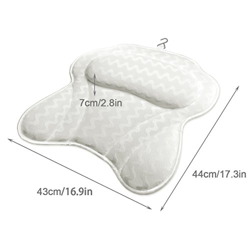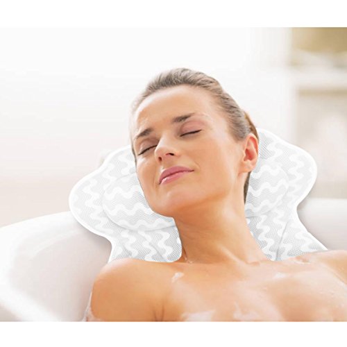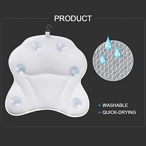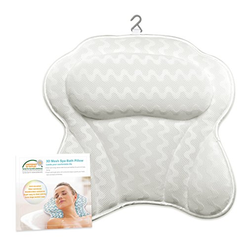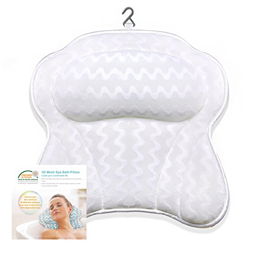 Bigger is Better! Sick and tired of suction cups that constantly slip out of place, fall off even float around in your bath? Our Bath pillow has 6 extra large suction cups stay in place. 3 inch thick cushion provides ultimate back, shoulder, and neck support.