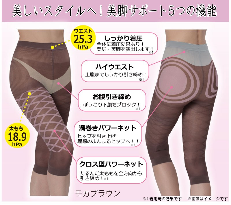 | ご使用方法 | 1.スパッツをたぐり寄せて両足を通し、ひざ周りにパワーネットがくるよう位置を調節してください。 2.スパッツがねじれないように注意しながら、太ももにかけて左右交互均等にゆっくり引き上げてください。 3.お腹まで引き上げてください。股とスパッツの間に空間ができないようにぴったりと着用してください。 【無理に強い力を加えると破れやすいためお気をつけください】 商品の破れやひっかき傷を防ぐために、アクセサリー等は外し手足の爪を滑らかにして着用してください。着用の際、一気に強く引き上げると破れ(伝線)や糸切れの原因になりますのでご注意ください。 |