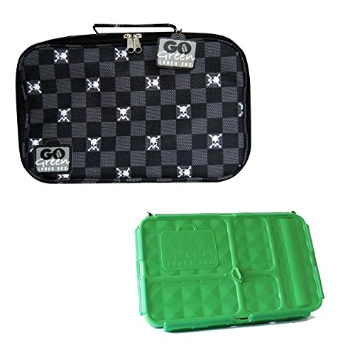 Go Green Lunch Box Set • 5 Compartment Leak-Proof Lunch Box • Insulated Carrying Bag • Beverage Bottle • Gel Freezer Pack Jolly Roger Pirate)