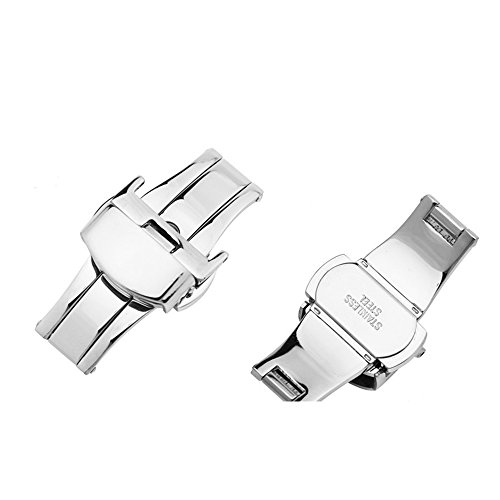 -. Feature : Made of Solid Stainless Steel / Clasp Size: 18mm/20mm / Surface: Polished finish / Automatic double push butterfly deployant buckle / Butterfly deployant clasp, would snap open when pressing the 2 buttons