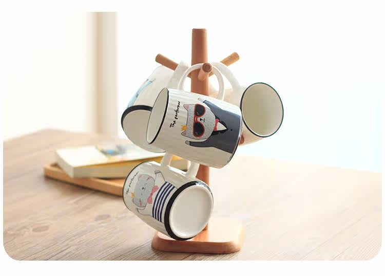 简约清新大容量马克杯套装 4个家用陶瓷杯北欧式家庭客厅喝水杯子